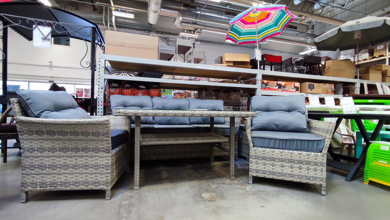 товары для дачи магазин ритейл торговый зал ассортимент садовые товары оборудование для отдыха товарная витрина садовая мебель комплект мебели диван кресла стол искусственное плетение торговая зона подушки мебель для улицы мебель для дачи выставочная зона стеллажи интерьер магазина серые подушки плетёная фактура дачная обстановка мебельный отдел декоративные элементы зонты демонстрационная зона товары для сада набор мебелиПохожие фотографии