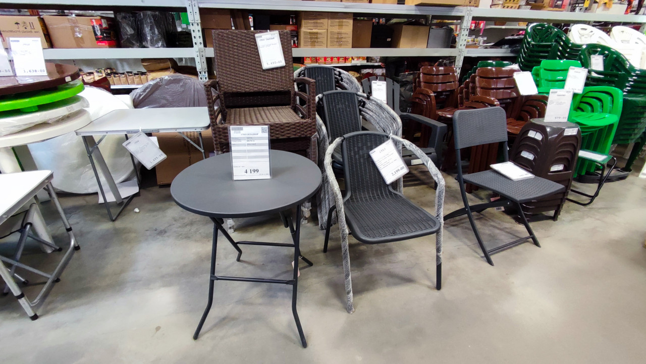 товары для дачи магазин ритейл торговый зал ассортимент садовые товары оборудование для отдыха товарная витрина садовая мебель столы кресла плетёные кресла пластиковые стулья ассортимент мебели стеллажи ценники мебель для дачи интерьер магазина сезонные товары оборудование для сада стол стул магазин садовой мебели выбор мебели бытовые товары выставленная продукция мебель для улицы серый стол плетёная фактура стопки стульев торговая экспозицияПохожие фотографии