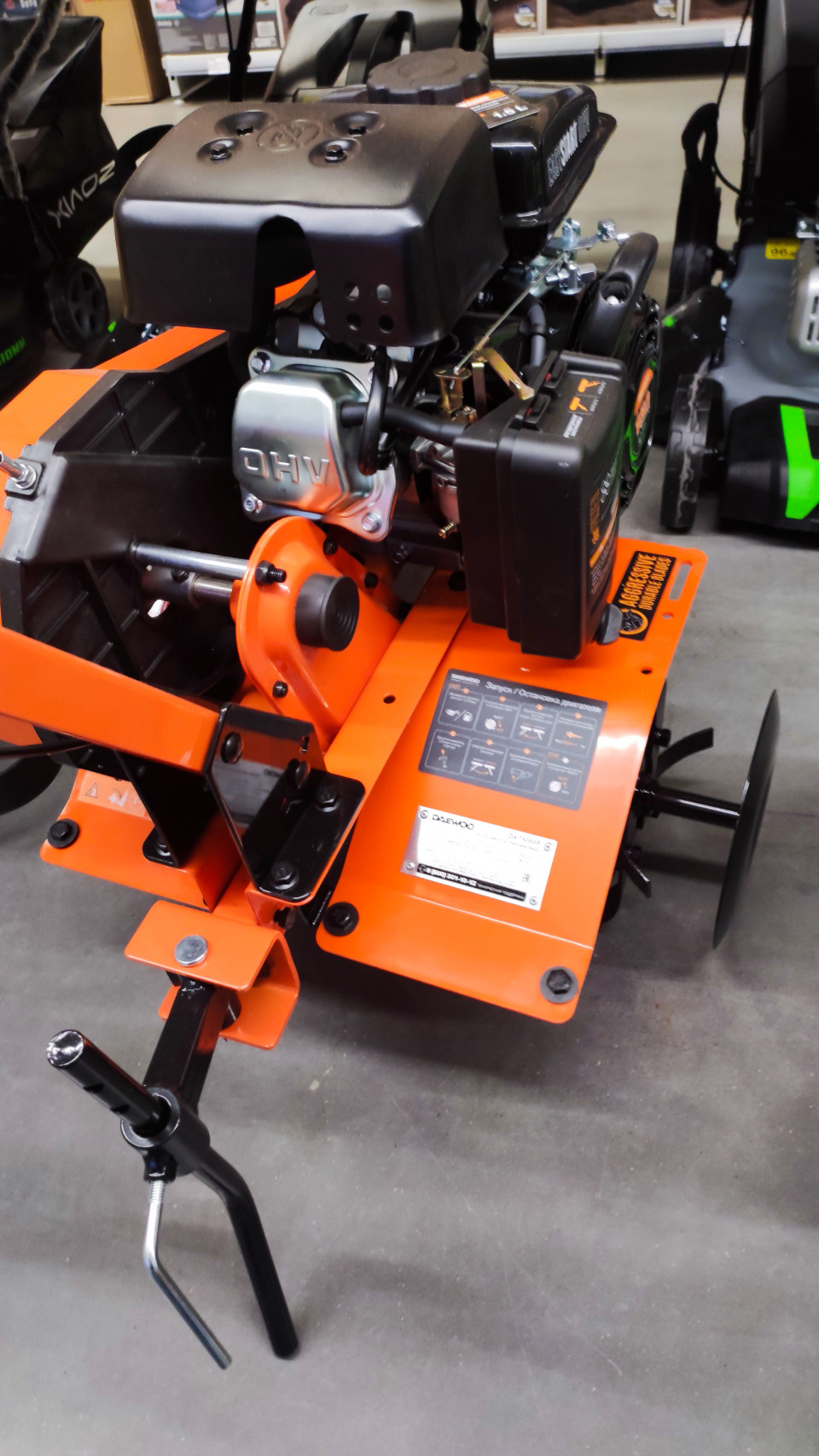 садовая техника магазин ритейл оборудование для сада ассортимент витрина выбор техники дачный инвентарь мотокультиватор бензиновый двигатель фрезы механизация оранжевый корпус магазин техники оборудование сельхозинструмент обработка почвы привод двигатель OHV металлическая рама крепеж трансмиссия стойка грунторезы инструмент технические детали фрезерный механизм культивация агротехника розничный магазин механическое устройство бензиновое оборудованиеПохожие фотографии
