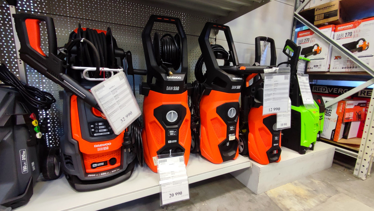 магазин садовый магазин товары для дачи товары для сада и огорода садовые товары розничная торговля витрина магазина стеллаж с товаром сезонные товары витрина мойка высокого давления Daewoo Karcher RedVerg оборудование инструмент торговый зал техника ассортимент бытовая техника моечная установка стеллаж ценники модели характеристики выбор инструмента каталог товаров магазин техники профессиональное оборудование мойка ремонт и уход устройства под давлением техничный ассортимент шланги корпус оборудования торговое оборудованиеПохожие фотографии