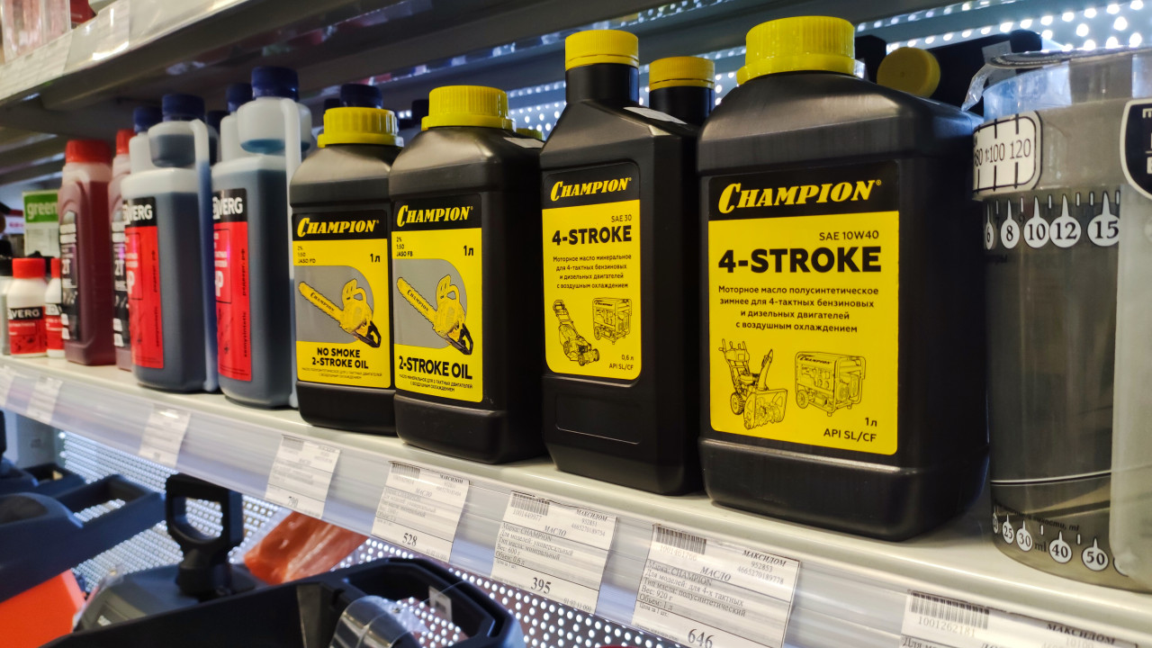 магазин садовый магазин товары для дачи товары для сада и огорода садовые товары розничная торговля витрина магазина стеллаж с товаром сезонные товары моторное масло Champion масло для двигателя двухтактное масло четырёхтактное масло полка магазина ассортимент смазочные материалы садовая техника инвентарь пластик ёмкость этикетка ритейл товары для техники обслуживание двигателя расходные материалы сервис бутылка яркая маркировка продукты для ухода двигатели техника для сада полочное пространство торговое оборудованиеПохожие фотографии