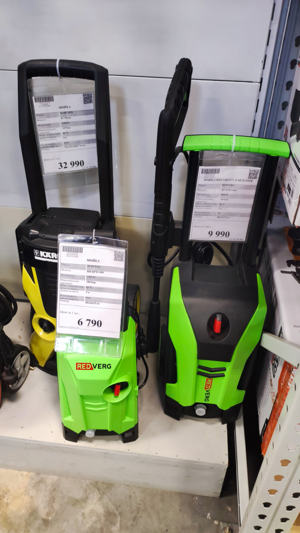 магазин садовый магазин товары для дачи товары для сада и огорода садовые товары розничная торговля витрина магазина стеллаж с товаром сезонные товары мойка высокого давления RedVerg Kärcher оборудование садовая техника бытовая химия торговый стенд витрина выбор техники характеристики давление мощность аппарат электрическая мойка очистка поверхностей инструмент ритейл дачное оборудование садовый инвентарь техника для дома шланг насосное оборудование компактная мойка ассортимент магазина бытовое оборудованиеПохожие фотографии