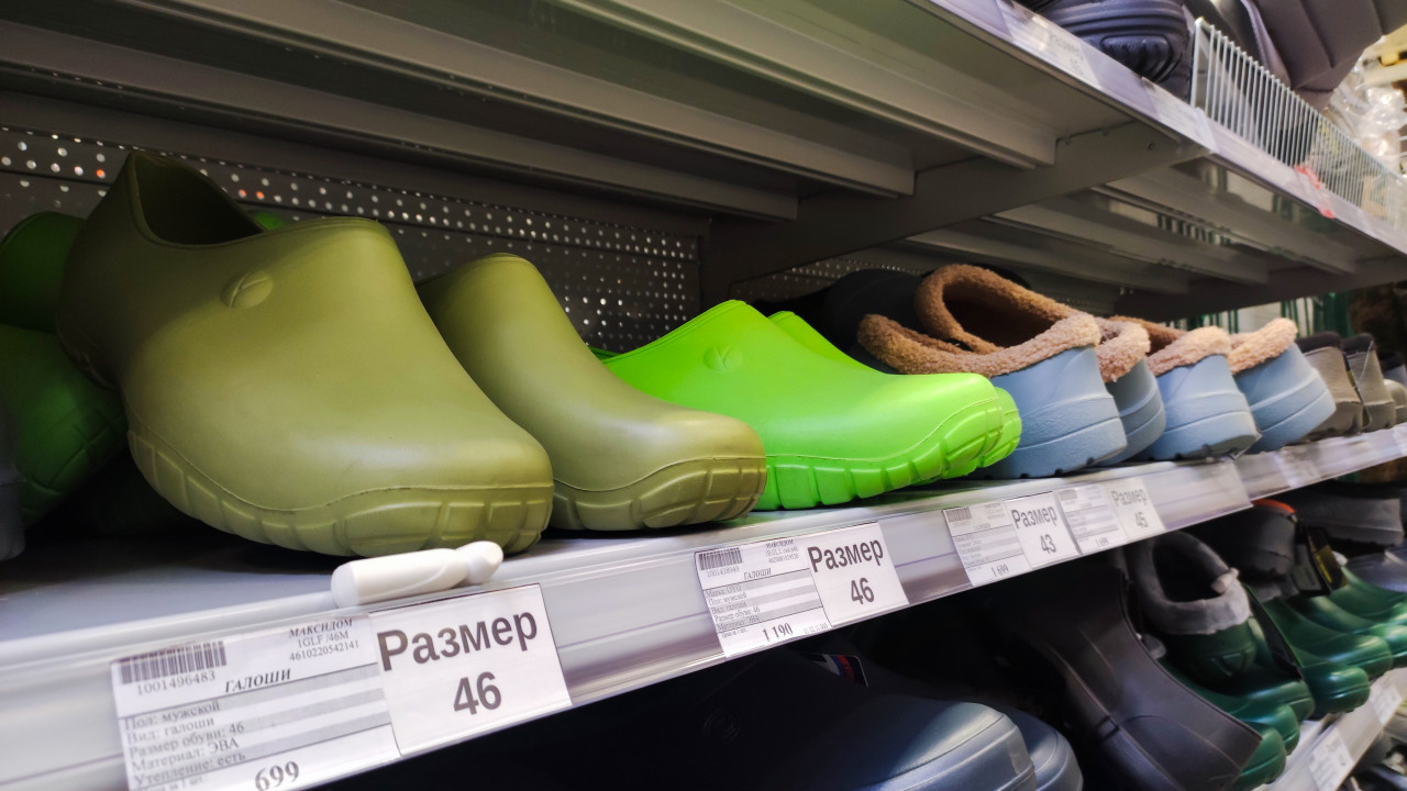 магазин садовый магазин товары для дачи товары для сада и огорода садовые товары розничная торговля витрина магазина стеллаж с товаром сезонные товары садовая обувь галоши мужские галоши утеплённая обувь ЭВА обувь зелёные галоши салатовые галоши обувные полки витрина ассортимент разные размеры размер 46 сезонная обувь дачная обувь хозяйственный магазин обувной отдел полимерная обувь зимняя обувь меховая отделка садовый сезон каталог товаров обувной ассортимент повседневная обувьПохожие фотографии
