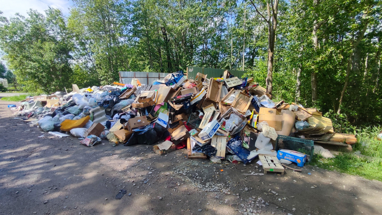 Стихийная свалка с большим объёмом упаковки и мягких отходов