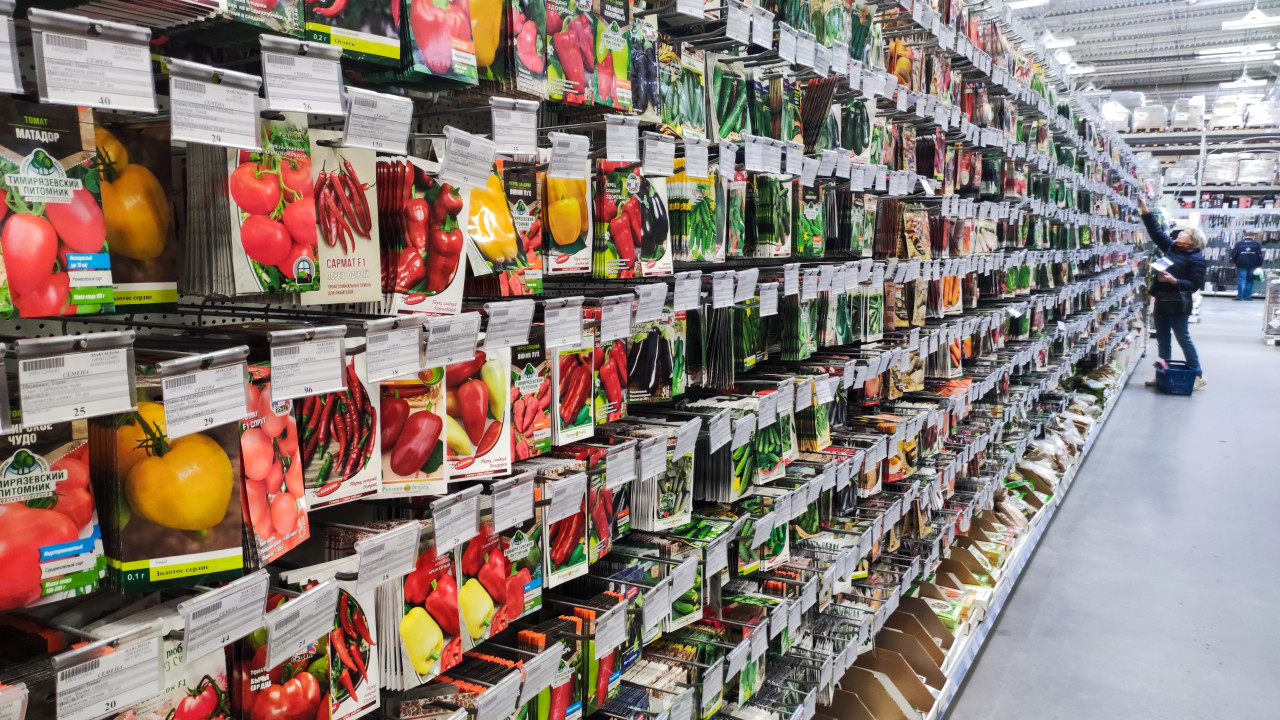 магазин садовый магазин товары для дачи товары для сада и огорода садовые товары розничная торговля витрина магазина стеллаж с товаром сезонные товары семена стеллаж овощные семена томаты перец огурцы упаковка семян покупатель садовый отдел ассортимент выбор товара зерновой материал рассада полка с товарами сортовые семена металлические держатели овощеводство агротовары посадочный материал дачный сезон хозяйственный магазин каталог семянПохожие фотографии