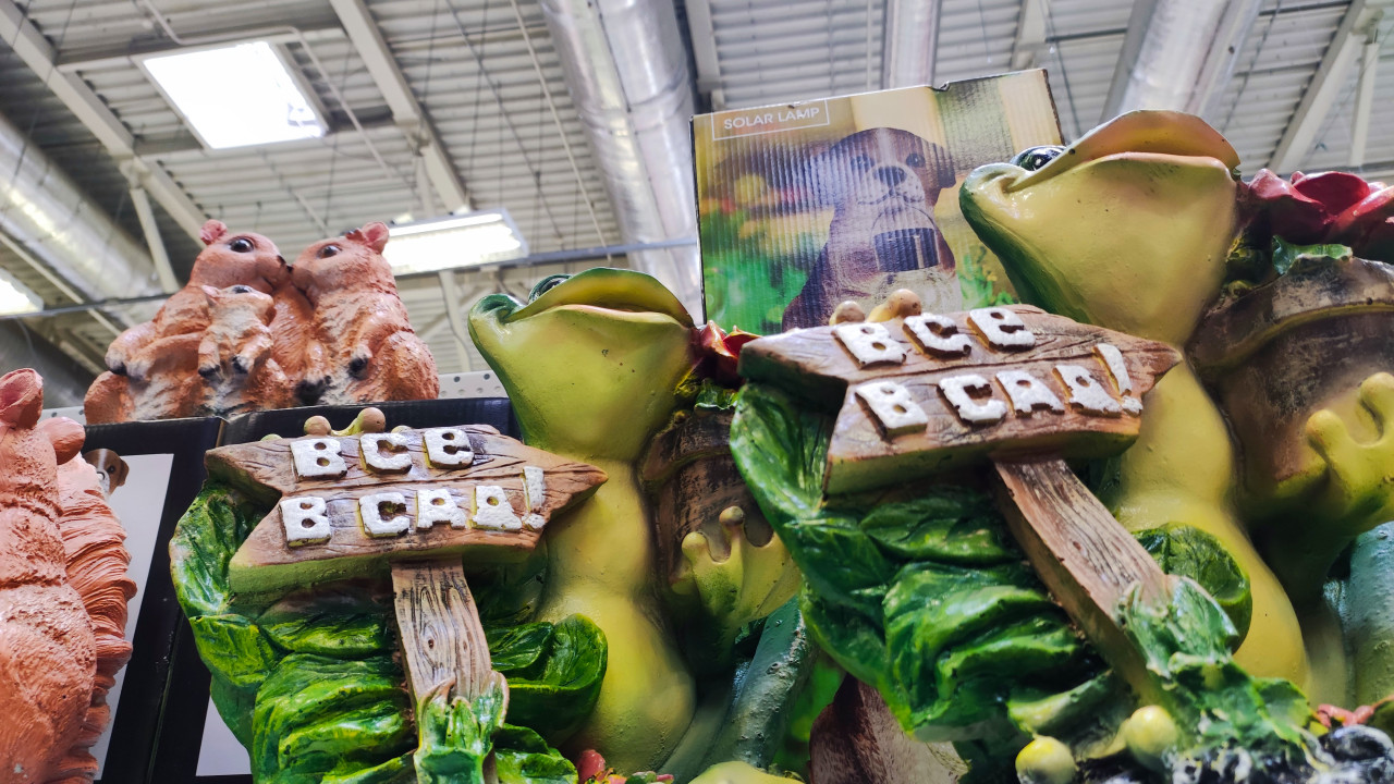 магазин садовый магазин товары для дачи товары для сада и огорода садовые товары розничная торговля витрина магазина стеллаж с товаром сезонные товары декоративные лягушки фигуры для сада садовый декор стеллаж полка с товарами табличка для сада декоративная надпись садовые украшения полимерные фигуры композиция для сада фигурки животных зелёный декор декоративные изделия ассортимент украшение участка интерьер сада декоративные элементы садовый отдел декоративная композиция товары на полке оформление дачиПохожие фотографии