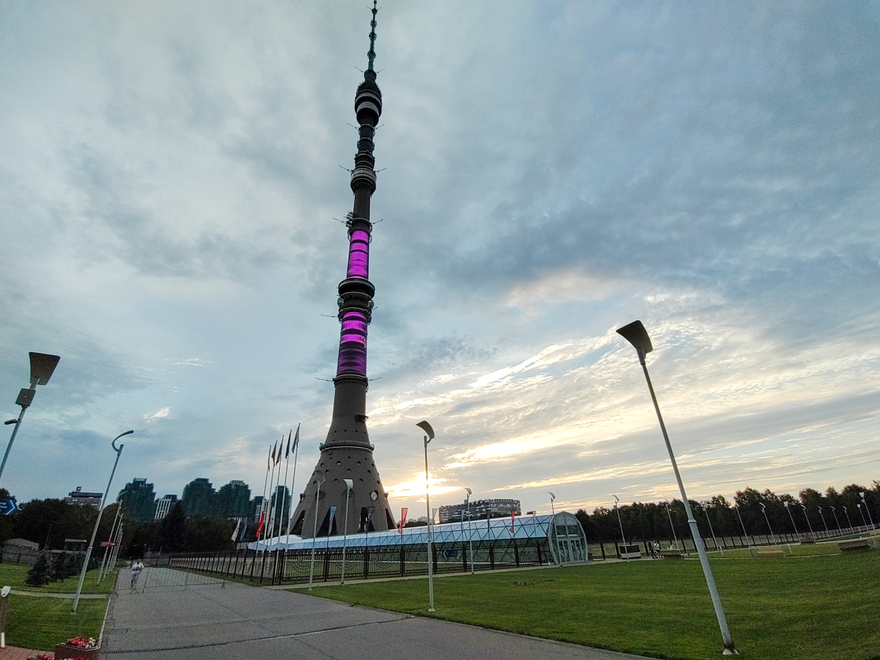 телебашня телевышка архитектура инженерное сооружение москва останкинская телебашня объект культурного наследия высотное сооружение телерадиовещание коммуникации городская инфраструктура городской пейзаж туристический объект символ города архитектурный объект подсветка вечерний город Москва Останкинская телебашня фиолетовый свет высотная конструкция уличные фонари газон флагштоки стеклянная галерея городская среда символ Москвы инженерия небо панорама открытая территория архитектурная доминантаПохожие фотографии