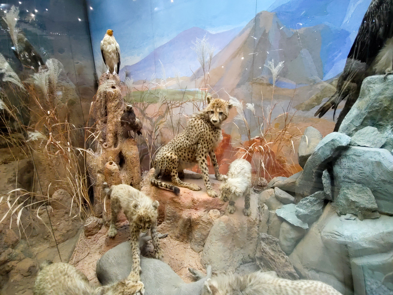 музей музейная экспозиция таксидермия чучело животного диорама естественная история научный музей зоология биология дикие животные фауна экосистема образовательная выставка интерьер музея культурное пространство естественнонаучный музей чучела животных гепард гепарды хищники кошачьи млекопитающие хищные птицы птицы камни сухая трава ландшафт природная зона учебная экспозиция научная выставкаПохожие фотографии