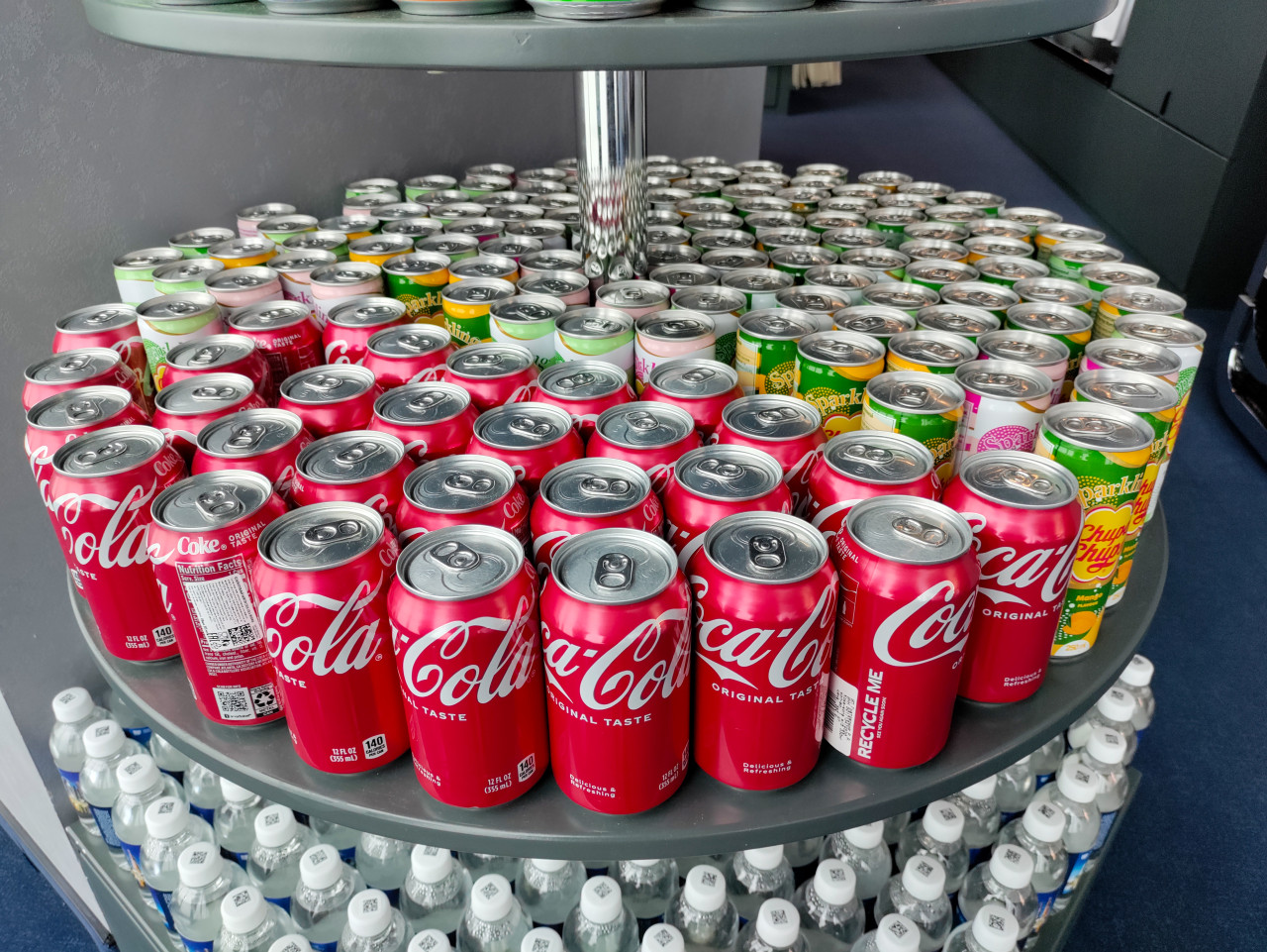 напитки безалкогольные напитки газированные напитки алюминиевая банка бренд дизайн упаковки торговая витрина продуктовая выкладка розничная торговля магазин туристический объект panorama360 москва сити башня федерация Coca Cola кока кола ассортимент товаров PANORAMA360 Москва Сити башня Федерация городской туризм товары для посетителей массовое потребление бренды алюминиевые банки питьевая вода бутылки воды гастрономическая зона торговое пространство маркетингПохожие фотографии