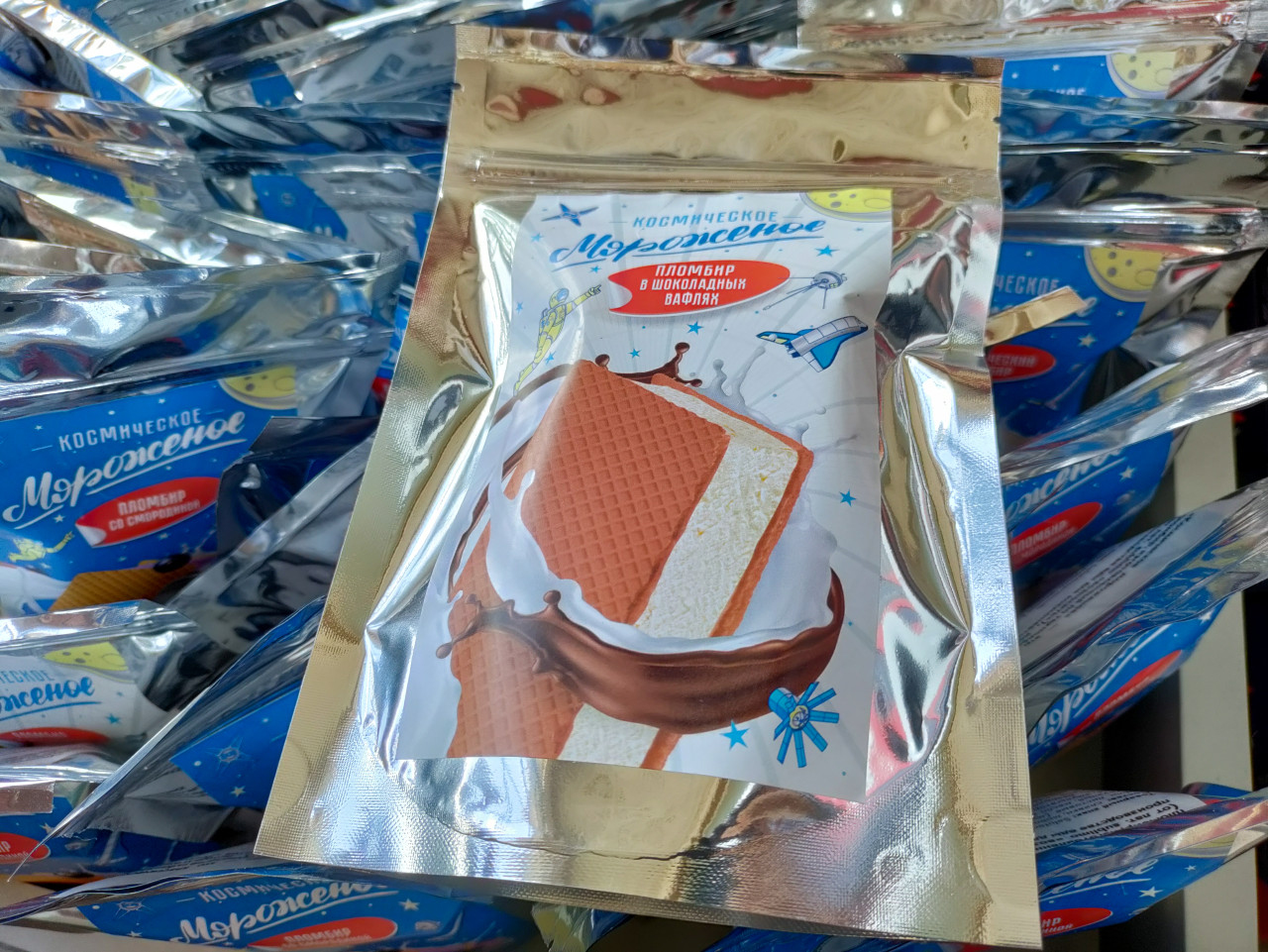 вднх роскосмос космос космическое питание продукты питания сувенирная продукция магазин витрина розничная торговля упаковка бренд государственная корпорация наука популяризация науки россия ВДНХ космическое мороженое пломбир вафля шоколад упаковка продукта герметичная упаковка пищевая технология еда десерт научные разработки популяризация космоса сувенир торговая точка выставка Россия технология хранения продукт питания брендингПохожие фотографии