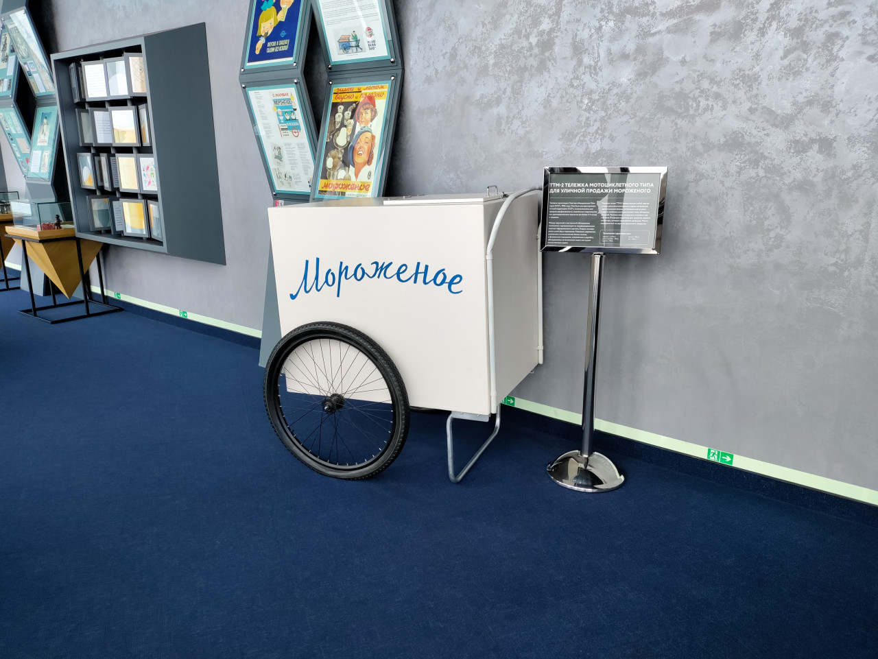 музей экспозиция мороженое уличная торговля тележка для мороженого торговое оборудование история торговли гастрономическая культура музейный объект ретро формат индустрия питания культурный объект чистая линия panorama360 москва сити интерактивная экспозиция фабрика мороженого Чистая линия Москва Сити PANORAMA360 выставка городской быт торговля продуктами интерьер музея информационный стенд гастрономияПохожие фотографии