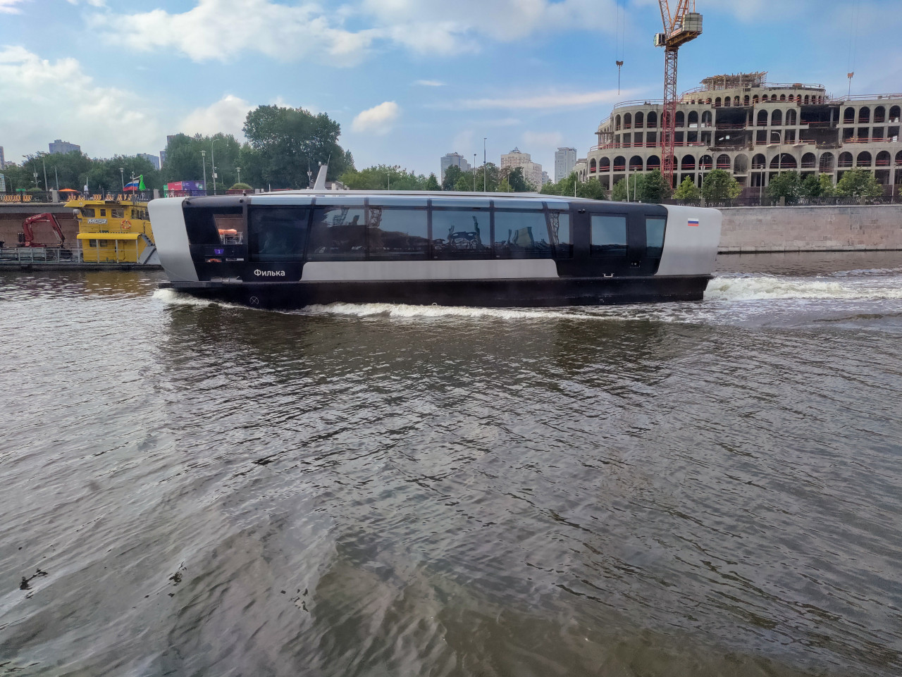 город москва москва река водный транспорт речной транспорт пассажирское судно общественный транспорт городской транспорт городской пейзаж центр города урбанистика туристический маршрут река электросудно Москва река набережная реконструкция здания арочная архитектура строительные краны городская среда инфраструктура транспортная система речные маршруты современный транспорт дневной свет мегаполис прибрежная зона движение по реке береговая линияПохожие фотографии