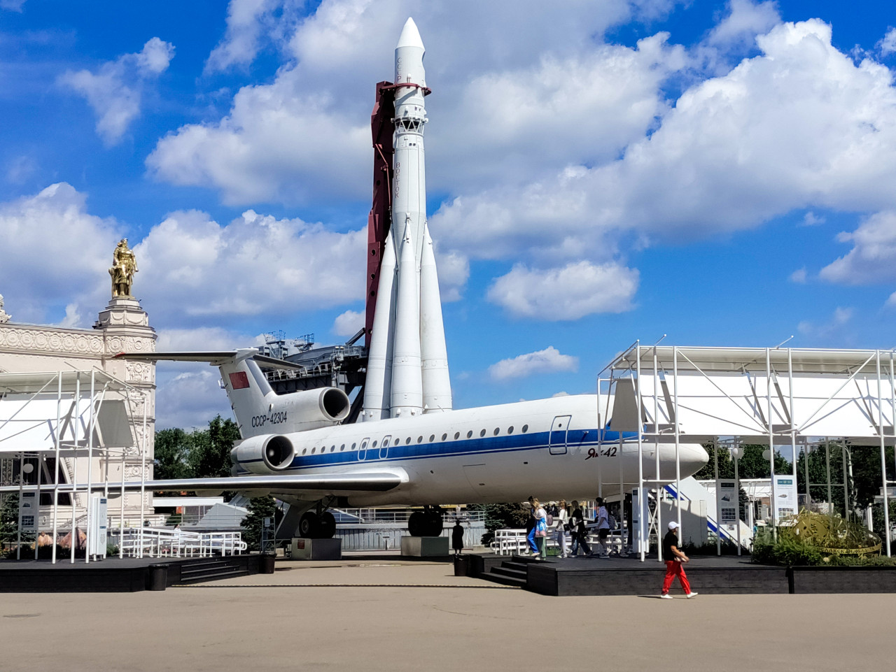 Самолёт Як-42 и ракета Восток в экспозиции ВДНХ