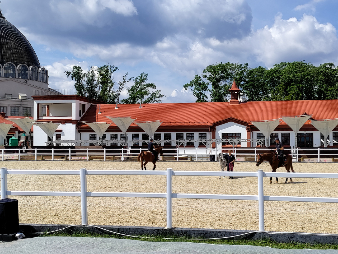 вднх конный манеж верховая езда конный спорт лошади всадники тренировка инструктор песчаная арена конный комплекс спортивный объект активный отдых городская среда туризм ВДНХ спортивное занятие забор ограждение спорт досуг городская инфраструктура архитектура ВДНХ навесы открытая площадка дневная съёмка облачное небоПохожие фотографии