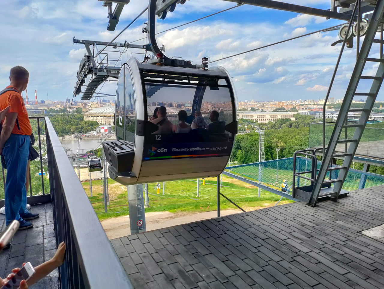Отправление кабины канатной дороги с платформы Воробьёвы горы