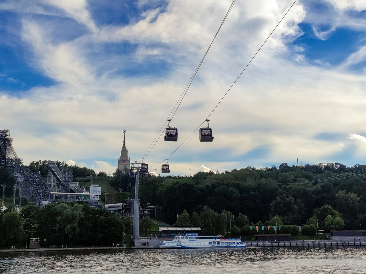 москва канатная дорога городской транспорт пассажирская кабина транспортная инфраструктура инженерные сооружения воробьёвы горы москва река туристический маршрут городской пейзаж урбанистика туризм Москва река общественный транспорт Воробьёвы горы Москва пассажирские кабины водоём набережная панорамный вид МГУ архитектурное наследие сталинская архитектура городской ландшафт летний день смотровой маршрут транспорт Москвы река в городе зелёные зоны достопримечательности МосквыПохожие фотографии