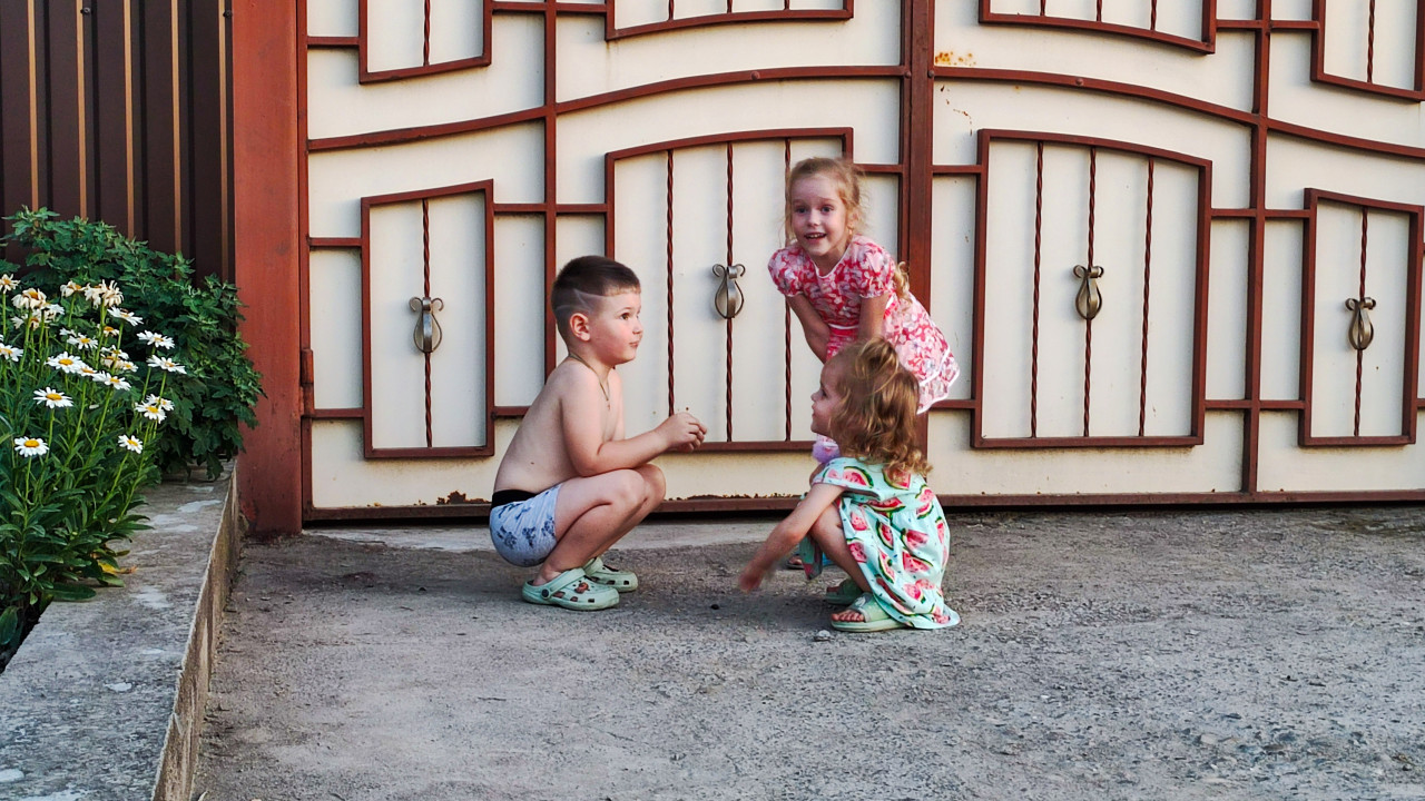 дети детство люди семья повседневная жизнь общение детей дети на улице уличная сцена семейная жизнь частный дом ворота двор асфальтированная площадка лето малыши дошкольный возраст социальное взаимодействие детская компания прогулка загородная жизнь сельская среда дневное освещение бытовой сюжетПохожие фотографии