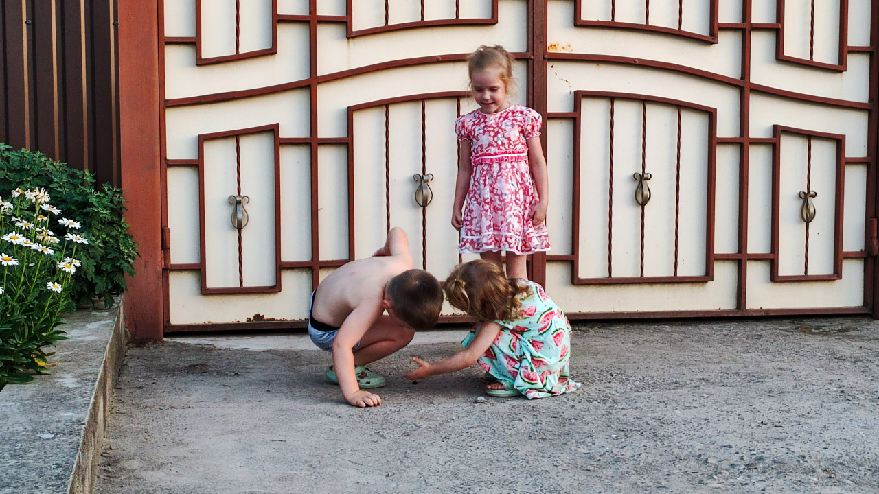 дети детство люди семья повседневная жизнь детская группа уличные игры дети во дворе частный дом ворота асфальт летняя одежда семейная жизнь загородная среда сельская местность прогулка повседневная сцена малыши дошкольники социальное взаимодействие детская активность отдых дневной свет двор бытовая фотографияПохожие фотографии
