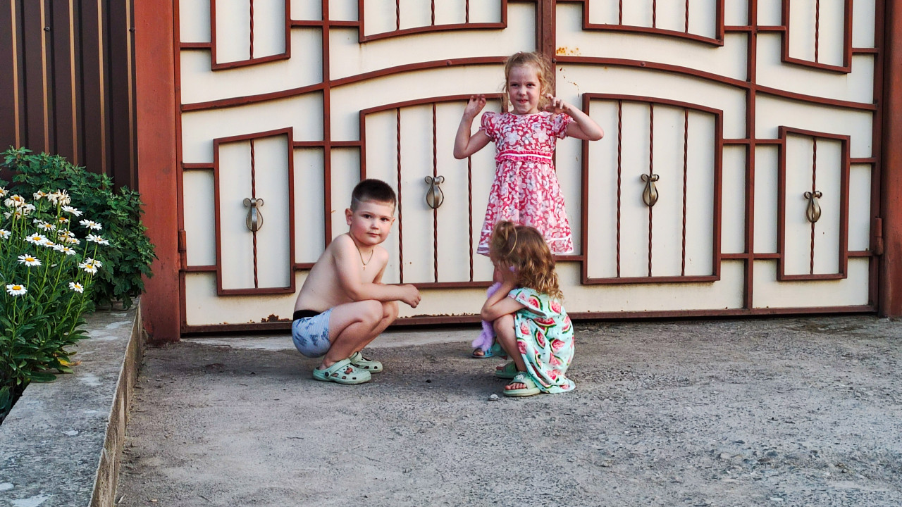 дети детство люди семья повседневная жизнь трое детей дошкольники дети на улице уличные игры семейная жизнь двор частный дом ворота асфальт летняя одежда детская одежда общение детей социальное взаимодействие повседневная сцена загородная жизнь сельская среда прогулка дневное освещение бытовой сюжет детская активностьПохожие фотографии