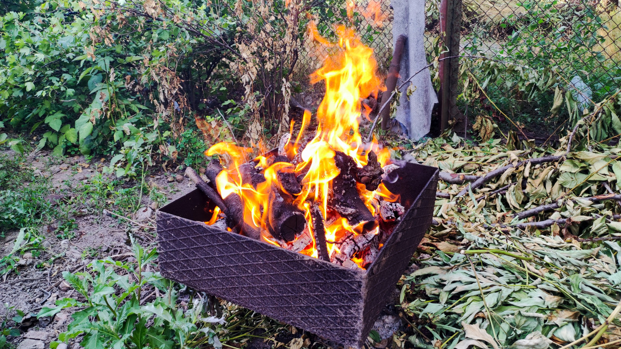 Скамейка и мангальная зона в сосновом лесу зимой