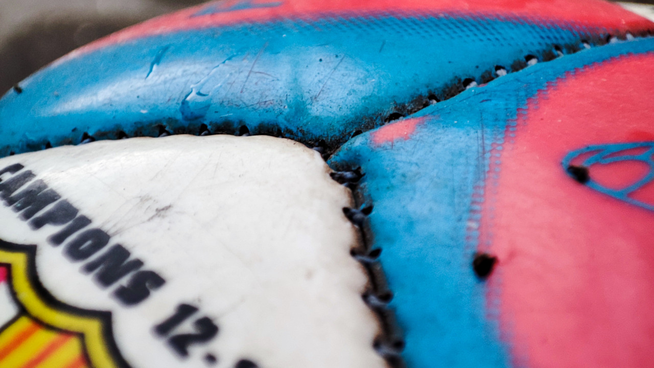 спорт спортивный инвентарь активный образ жизни хобби досуг физическая активность любительский спорт повседневная жизнь здоровье спортивное снаряжение футбол футбольный мяч мяч командные виды спорта уличный спорт тренировка игра износ потертости текстура материала швы мяча детали крупный план спортивное оборудование использование эксплуатация дворовый футбол синий цвет розовый цвет белый цвет поверхностьПохожие фотографии