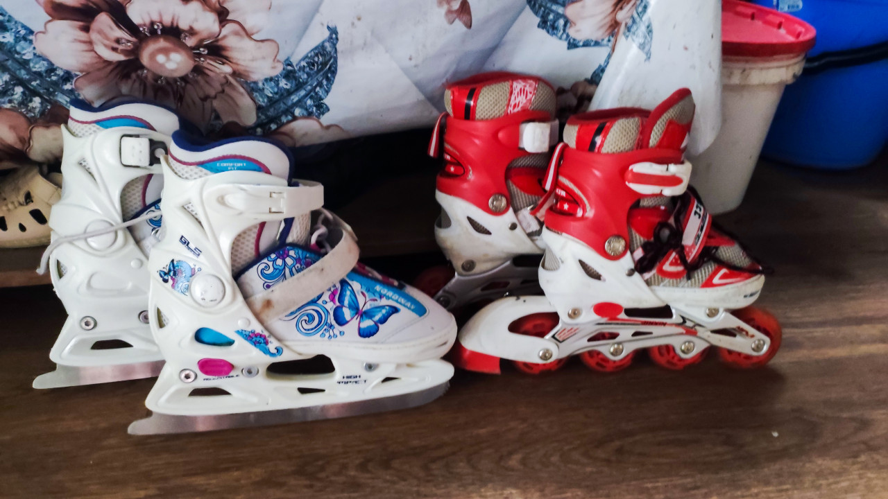 спорт спортивный инвентарь активный образ жизни хобби досуг физическая активность любительский спорт повседневная жизнь здоровье спортивное снаряжение детский спорт коньки фигурные коньки роликовые коньки спортивная обувь инвентарь активный отдых детская экипировка катание зима лето семейный быт дом интерьер пол снаряжение развитие ребёнка спорттовары образ жизниПохожие фотографии