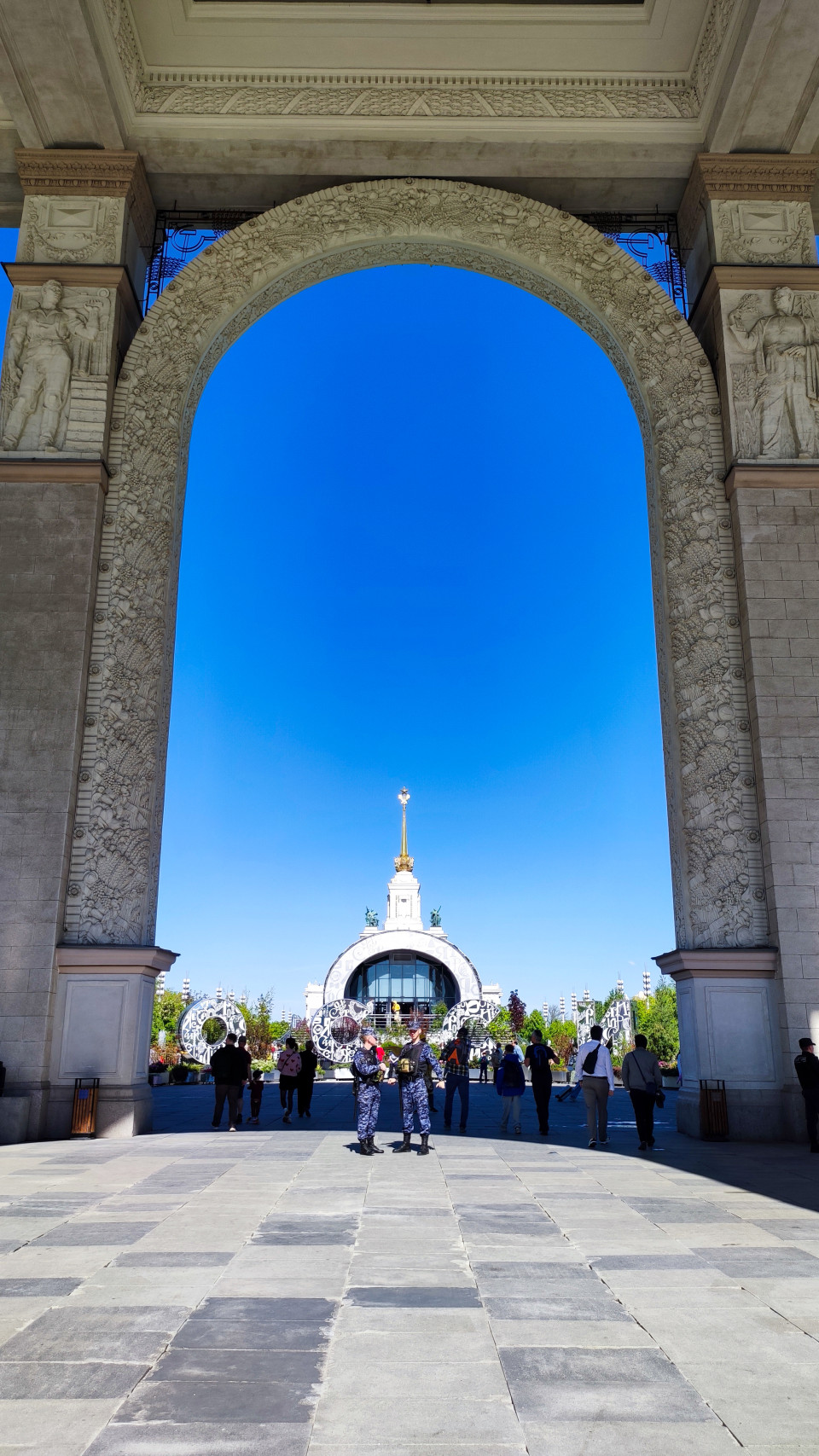 Арочный проём главного входа ВДНХ с видом на павильон №1