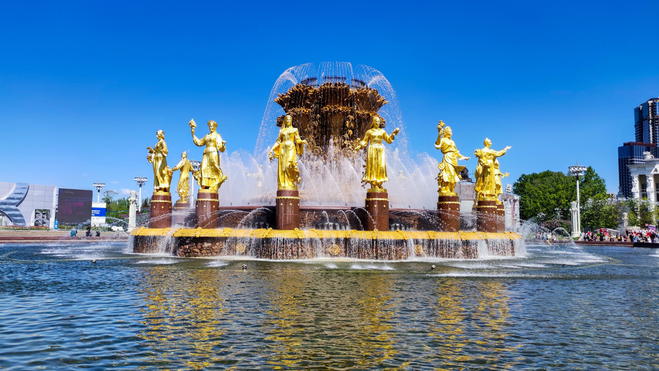 вднх москва архитектура культурное наследие объект культурного наследия памятник архитектуры советская архитектура архитектура ссср общественное пространство туристический объект городской пейзаж фонтан центральная чаша водные струи скульптуры позолота монументальное искусство фонтан дружба народов символика ссср выставочный комплекс исторический объект архитектурная композиция туристическая достопримечательностьПохожие фотографии