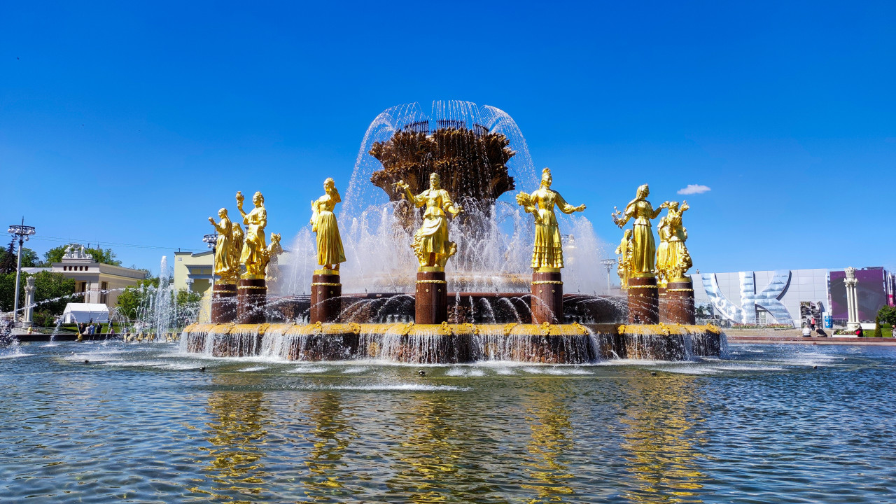 вднх москва архитектура культурное наследие объект культурного наследия памятник архитектуры советская архитектура архитектура ссср общественное пространство туристический объект городской пейзаж фонтан город водная архитектура достопримечательность фонтан дружба народов скульптура позолоченные фигуры национальные костюмы центральная аллея выставочный комплекс туристическое место лето дневной свет отражение в воде исторический объект благоустройствоПохожие фотографии