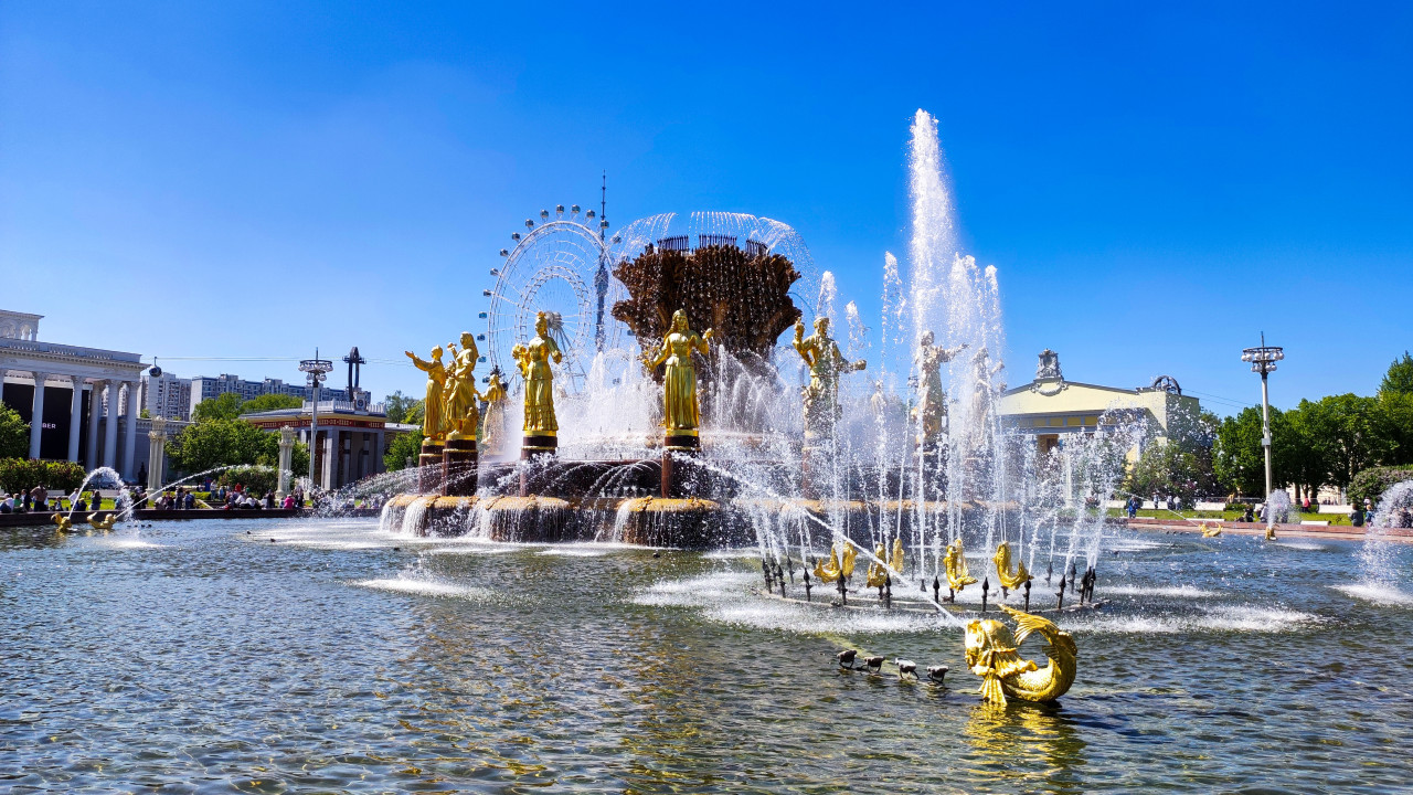 вднх москва архитектура культурное наследие объект культурного наследия памятник архитектуры советская архитектура архитектура ссср общественное пространство туристический объект городской пейзаж фонтан водные струи водная система фонтанное искусство фонтан дружба народов скульптура позолота выставочный комплекс колесо обозрения туристическая зона летний день дневной свет инженерные сооружения исторический объект благоустройствоПохожие фотографии