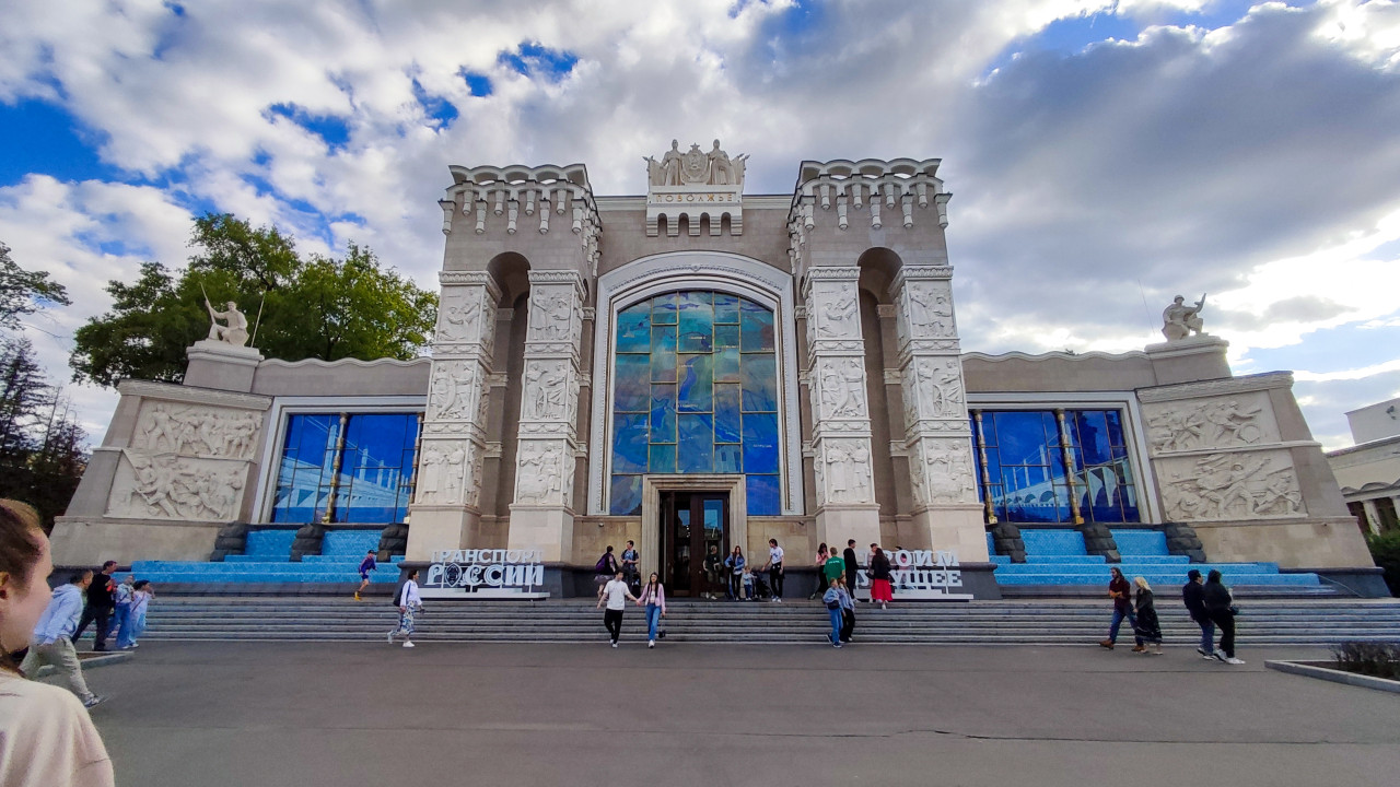 вднх москва архитектура павильон культурное наследие объект культурного наследия советская архитектура сталинский ампир историческое здание выставочный комплекс общественное пространство городской пейзаж туристический объект ВДНХ Москва павильон транспорт России сталинская архитектура фасад здания монументальная архитектура скульптурные рельефы витражи лестница туристы посетители городская среда музей история СССР достопримечательности Москвы выставка архитектурные деталиПохожие фотографии