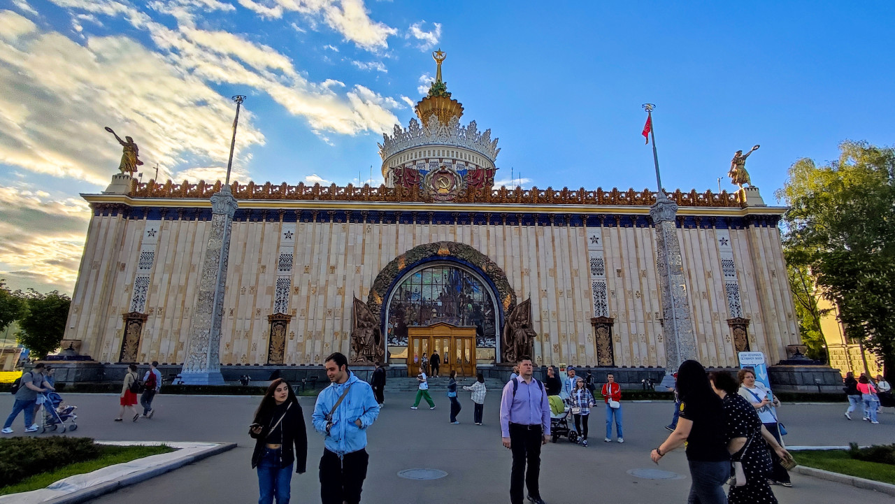 вднх москва архитектура павильон культурное наследие объект культурного наследия советская архитектура сталинский ампир историческое здание выставочный комплекс общественное пространство городской пейзаж туристический объект ВДНХ Москва павильон Украина павильоны ВДНХ памятник архитектуры фасад здания скульптуры лепнина декоративные элементы орнамент городская среда туристы прогулка достопримечательности Москвы история СССР архитектурный ансамбль вечерний светПохожие фотографии