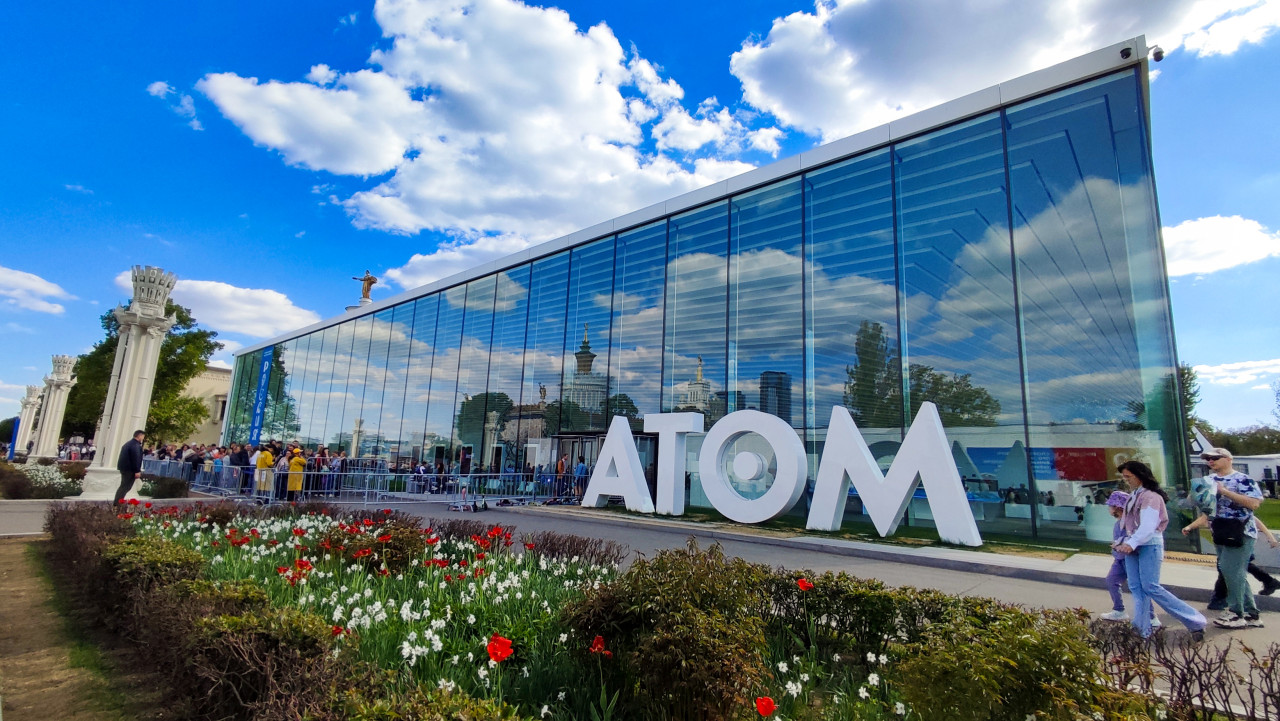 вднх москва архитектура выставочный комплекс павильон современная архитектура общественное пространство городской пейзаж культурный объект выставка россия туристический объект городская среда благоустройство посетители ВДНХ павильон АТОМ Москва музей стеклянный фасад надпись АТОМ летний день цветники архитектура ВДНХ туристическое место музейная инфраструктура урбанистика выставка Россия научно просветительский центр современный музейПохожие фотографии