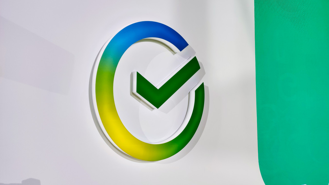 Логотип Сбера на стене павильона