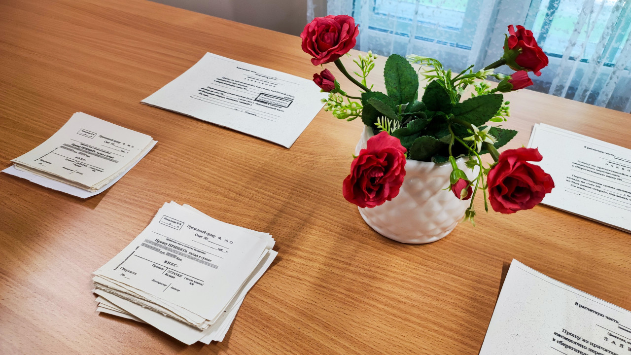 Банковские бланки и рабочая поверхность в реконструкции сберкассы СССР
