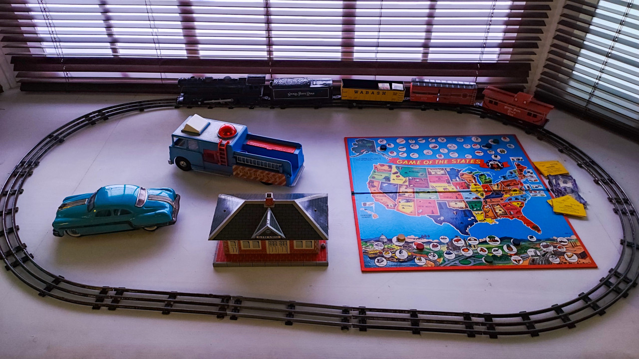 музей выставка вднх выставка россия павильон музейная экспозиция детская зона игрушки советские игрушки винтаж интерьер музея интерактивная экспозиция интерьер макет железная дорога игрушечная железная дорога игрушечный поезд вагоны рельсы настольная игра карта США игровой стол детские игрушки ретро быт семейный досуг детство середина XX века музей быта реконструкция интерьера ВДНХ павильон АТОМ предметная съёмкаПохожие фотографии