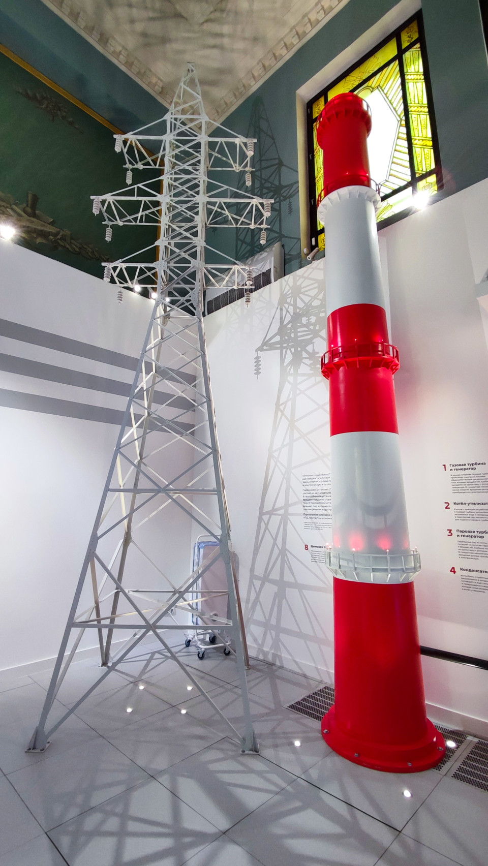Макеты ЛЭП и дымовой трубы в экспозиции музея городского хозяйства