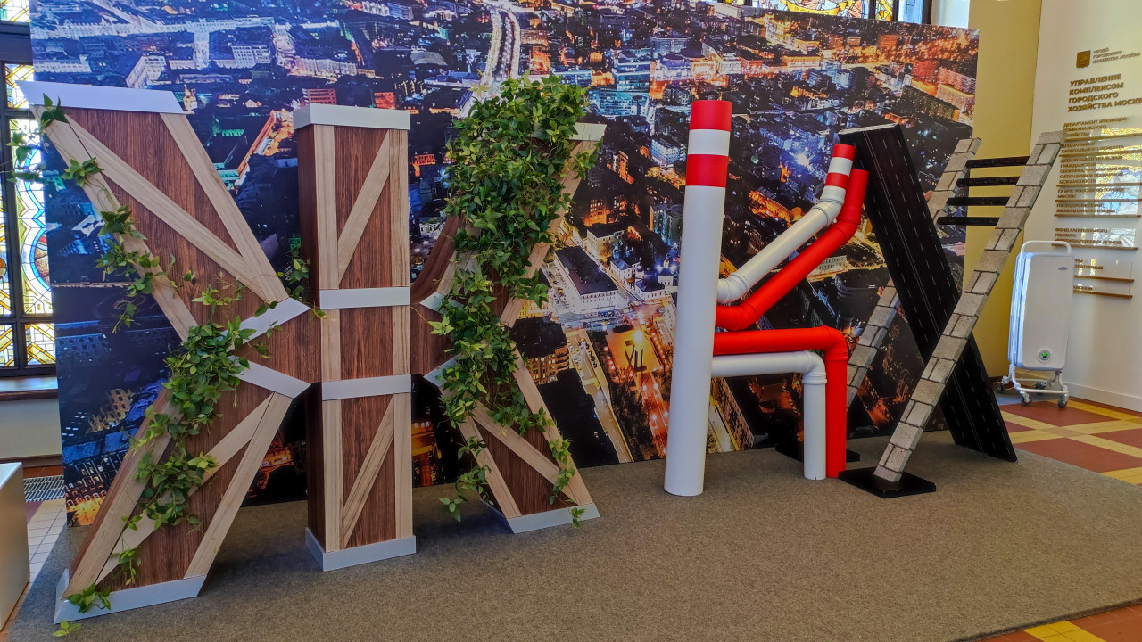 вднх москва выставка россия павильон выставочный комплекс музей экспозиция общественное пространство культурное событие презентация музей городского хозяйства жкх жилищно коммунальное хозяйство выставка россия 2024 музейная инсталляция объемные буквы инженерные сети трубы городская инфраструктура экспозиционный дизайн озеленение декоративные элементы городской пейзаж ночной город выставочный зал общественная экспозиция урбанистика городская среда интерьер просветительский проектПохожие фотографии