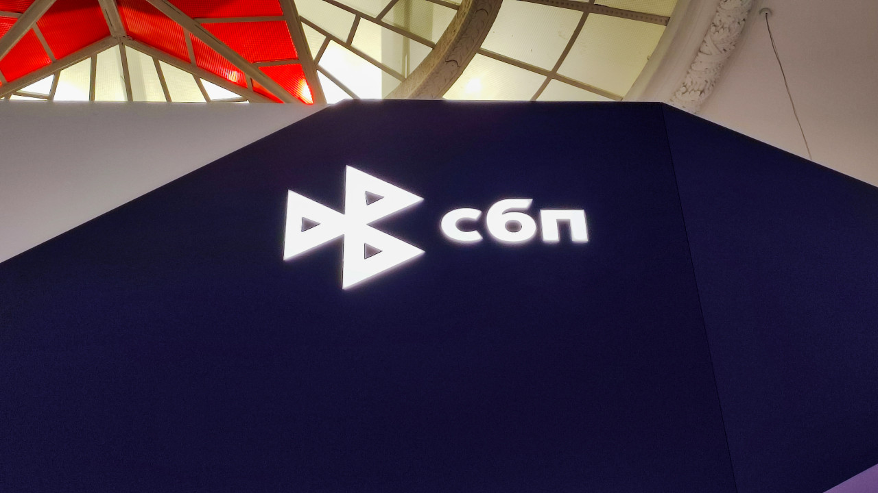 Логотип СБП на выставочной стене павильона «Умные финансы»