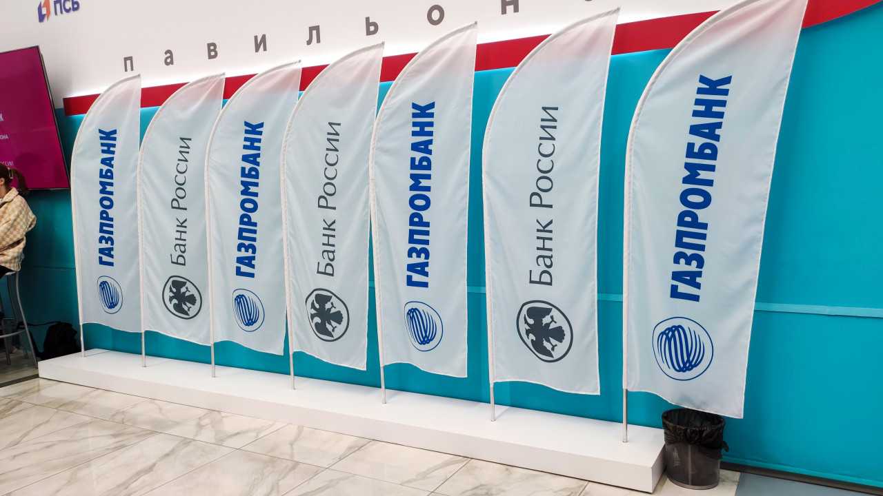 Флаги Газпромбанка и Банка России в выставочном пространстве