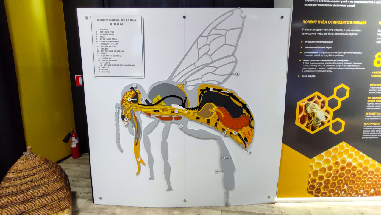 Информационный стенд с анатомией пчелы в музейной экспозиции