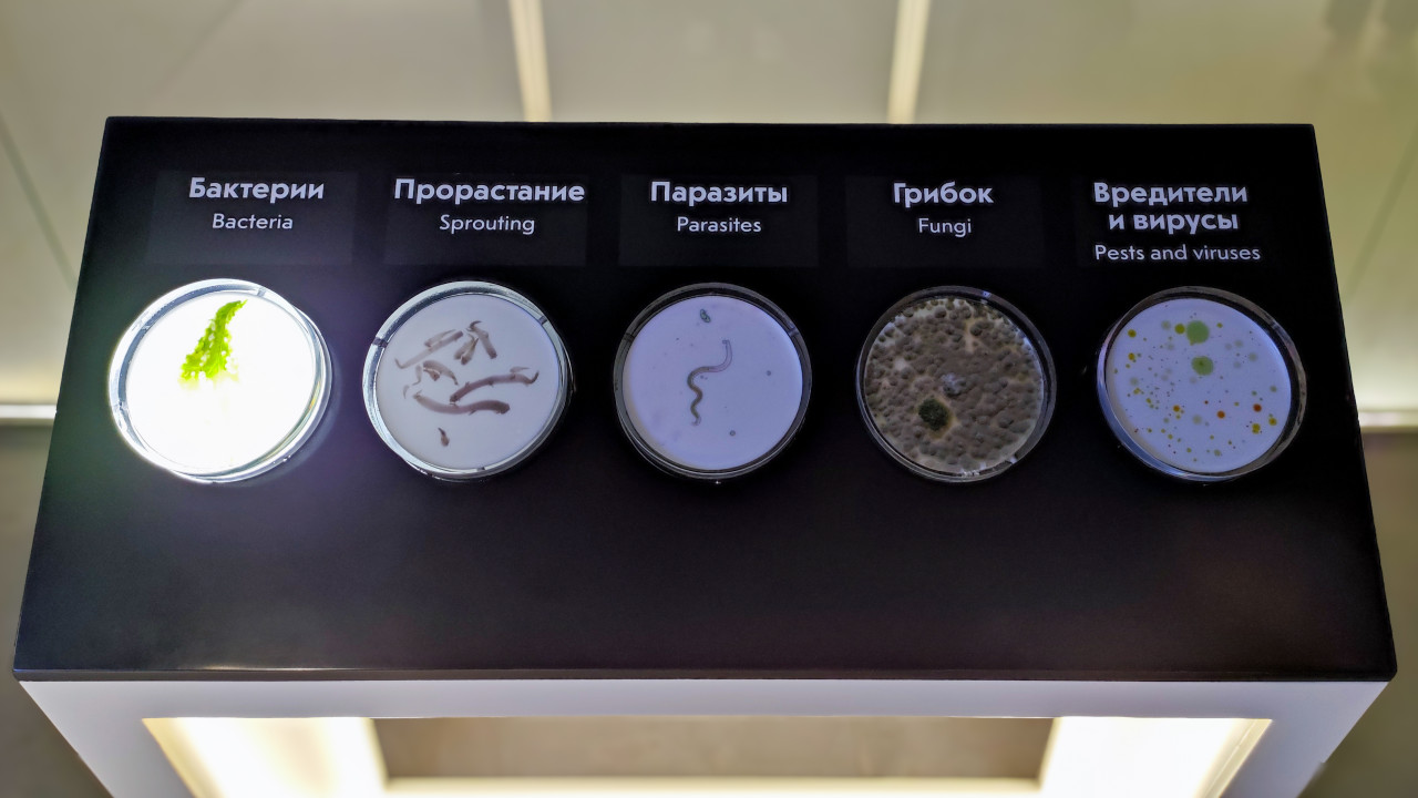 вднх москва выставка россия павильон выставочный комплекс музей экспозиция общественное пространство культурное событие презентация павильон АТОМ ВДНХ интерактивный стенд бактерии паразиты грибки вирусы вредители биология пищевая безопасность радиационные технологии Росатом научный музей выставка Россия 2023 образовательная экспозиция микробиология наука ионизирующее излучение пищевые продукты музейный объект визуализация просвещение научная выставкаПохожие фотографии