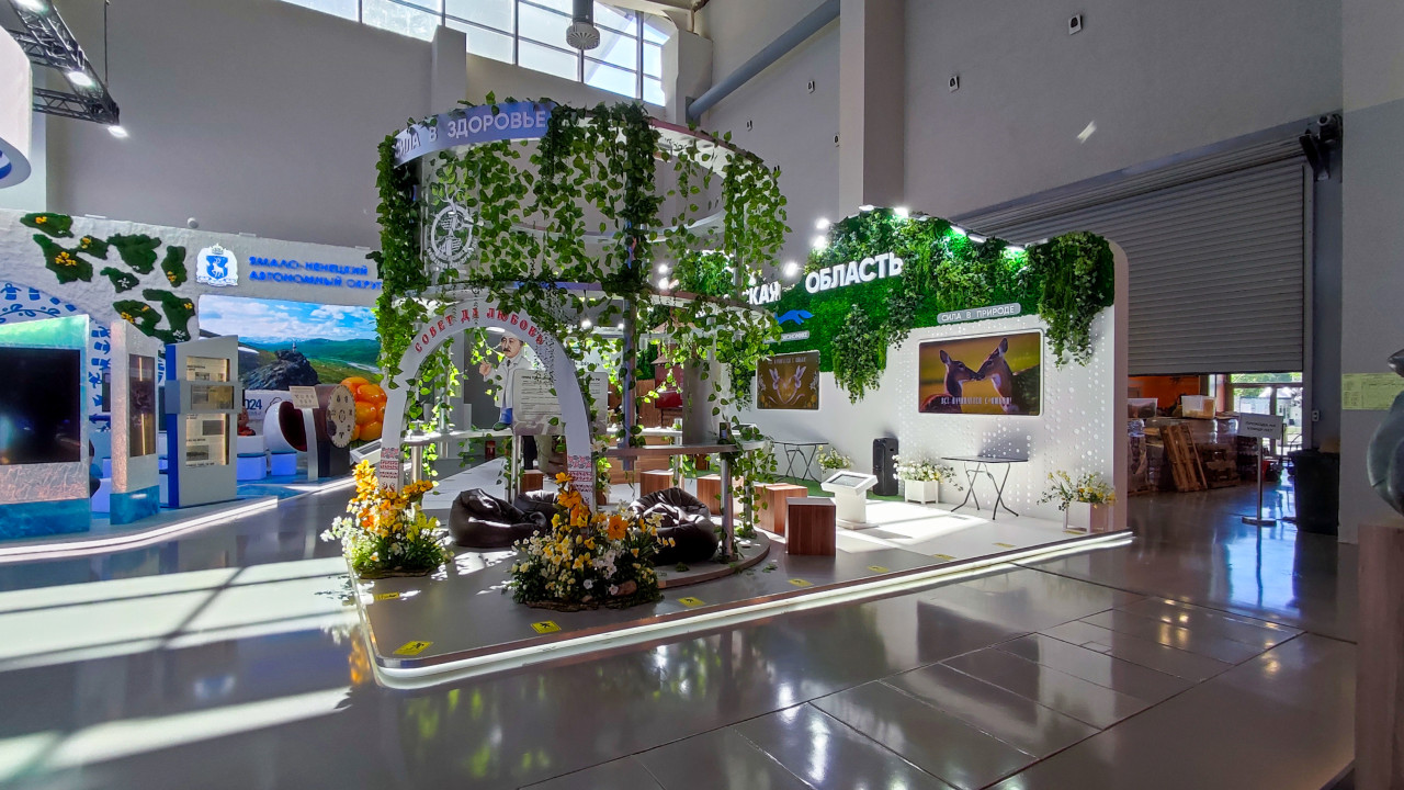 Экостенд региона с озеленением и зонами отдыха в павильоне №75