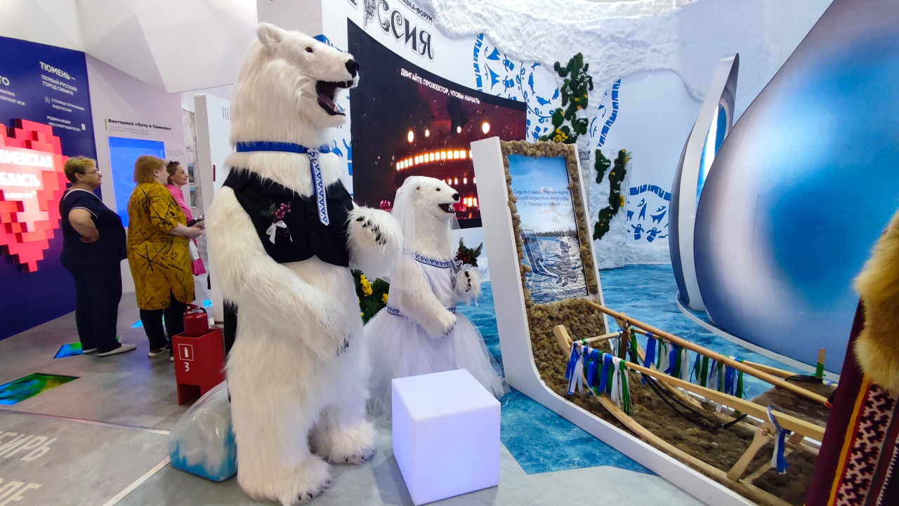 вднх москва выставка россия павильон выставочный комплекс музей экспозиция общественное пространство культурное событие презентация выставка ВДНХ павильон 75 Россия региональный стенд Арктика белый медведь арт объект национальные традиции культура Севера интерьер павильона выставочное пространство декоративные фигуры народная символика выставка Россия федеральные округа северные регионы культурный проект временная экспозиция Москва этнография стенд региона тематическая экспозицияПохожие фотографии
