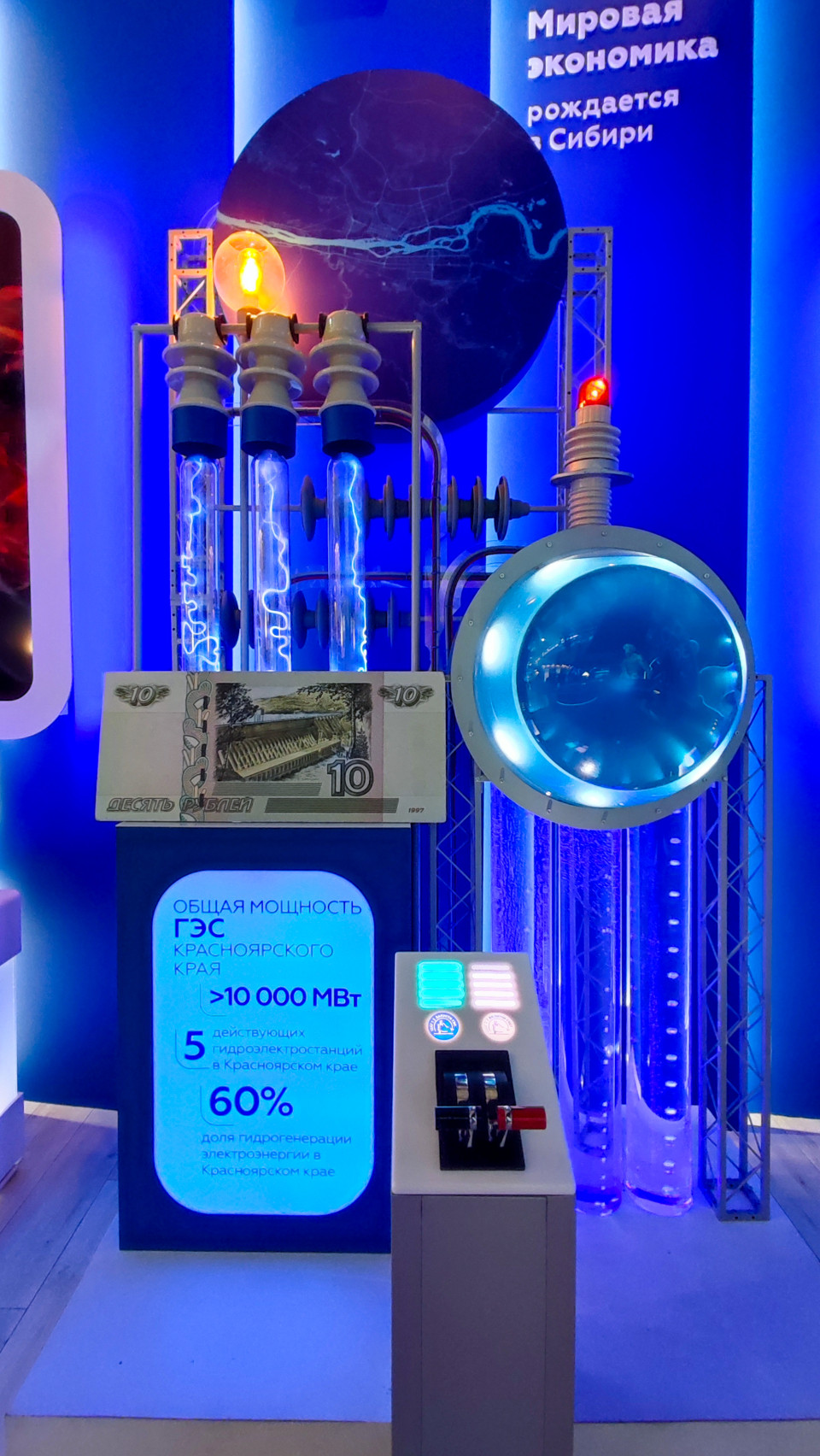 вднх москва выставка россия павильон выставочный комплекс музей экспозиция общественное пространство культурное событие презентация выставка Россия ВДНХ стенд Красноярского края прототип ГЭС интерактивный экспонат гидроэлектростанция энергетика региона электроэнергия световые эффекты электрические разряды технологии демонстрационный стенд павильон 75 энергетическая инфраструктура промышленность Сибири популяризация науки инженерные решения научная экспозиция региональный проект энергетические ресурсы развитие промышленности современная выставка технический объект образовательный форматПохожие фотографии