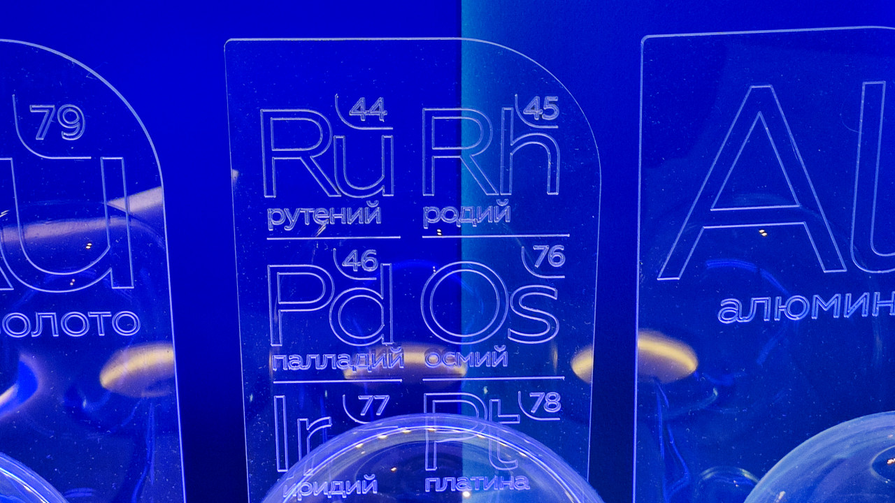 Панель с платиновыми металлами в экспозиции Красноярского края
