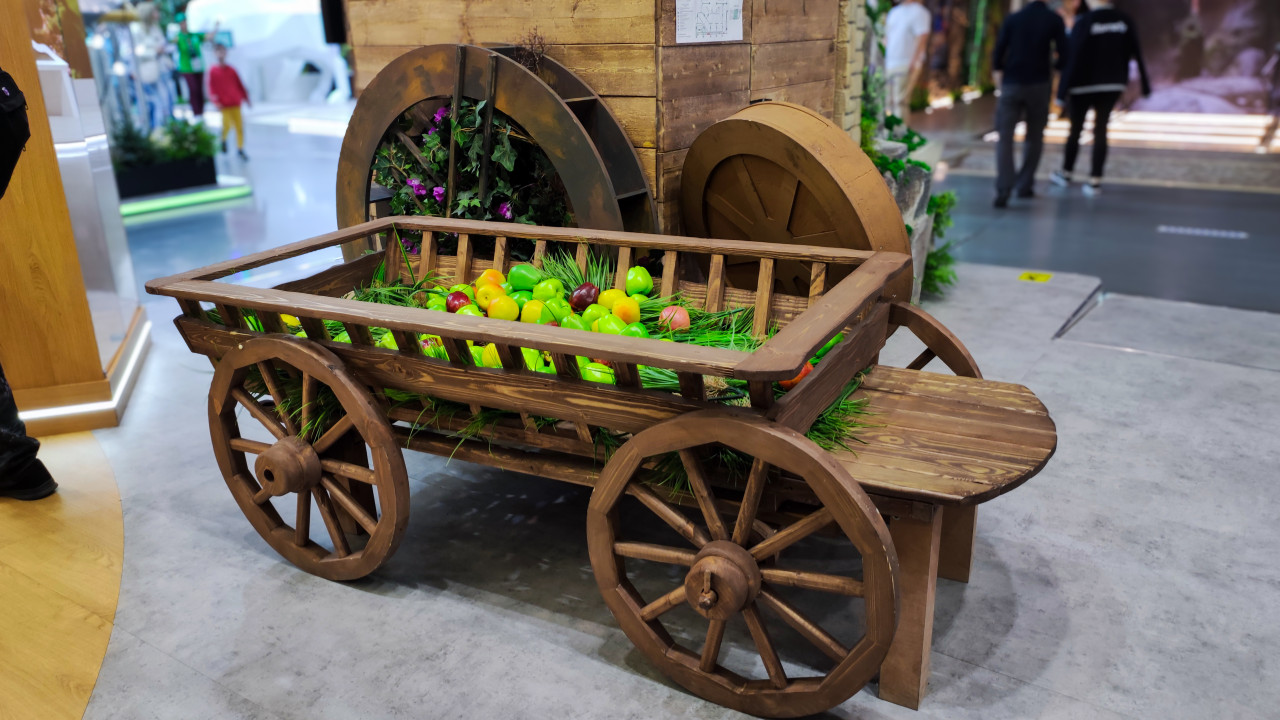 Декоративная телега с фруктами на региональном стенде