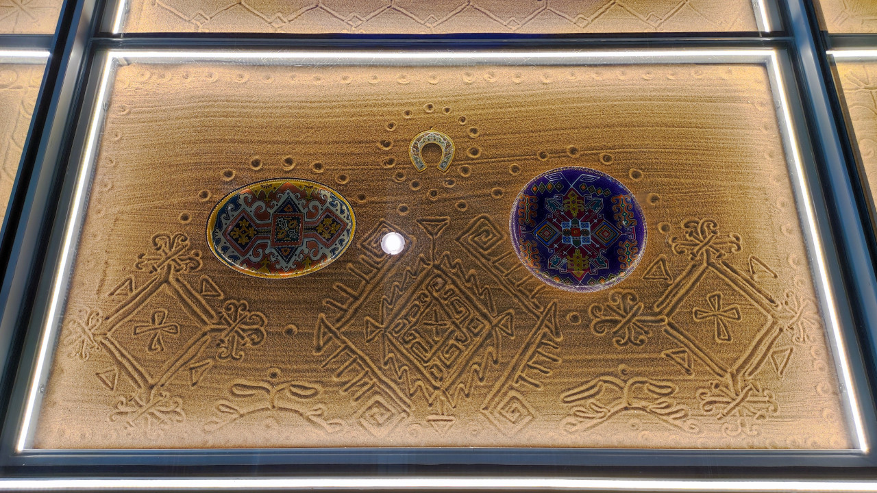 вднх москва выставка россия павильон выставочный комплекс музей экспозиция общественное пространство культурное событие презентация выставка ВДНХ павильон 75 Россия регионы России песочная композиция орнамент народные узоры декоративное искусство этнические мотивы символика культурная экспозиция выставочный объект традиционные орнаменты художественная инсталляция национальная культура декоративные элементы предметы искусства этнографический дизайн визуальная культура региональные традиции культурное наследие оформление витрины музейный формат выставочный интерьер арт объектПохожие фотографии