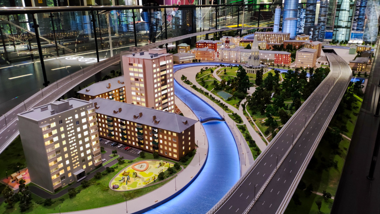вднх москва выставка россия экспозиция музей выставочный павильон выставочный объект демонстрационный макет модель инженерия музейная экспозиция макет города макет москвы интерактивный макет музей городского хозяйства москвы павильон 5 выставка россия 2024 раздел город жилой район жилая застройка многоэтажные дома городская река москва река набережная парковая зона озеленение пешеходные дорожки мост городская среда благоустройство урбанистика планировка города масштабная модельПохожие фотографии