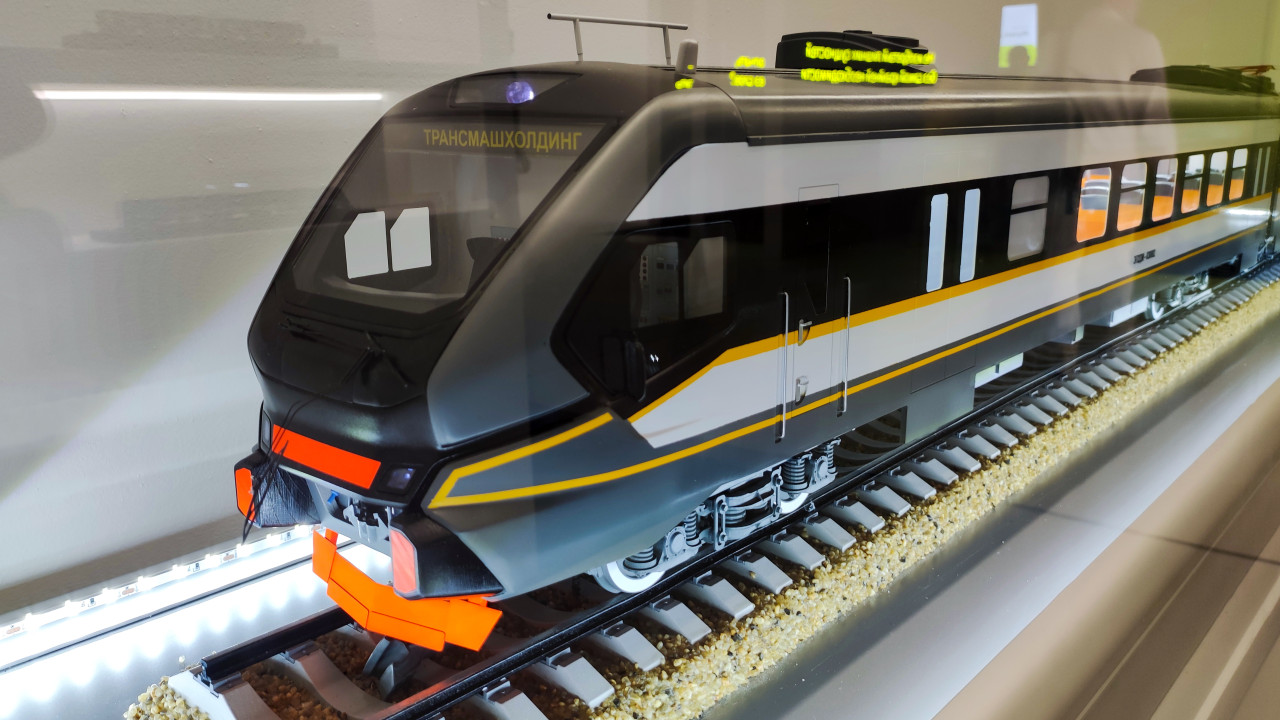 Макет современного электропоезда на выставке Музея транспорта Москвы